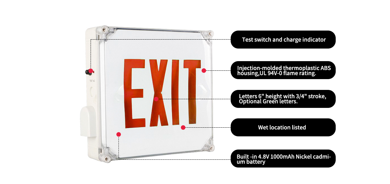 Dấu hiệu thoát dẫn đèn LED không thấm nước ngoài trời (vị trí ướt, chữ màu đỏ)