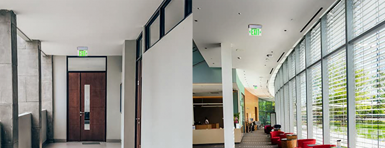 *Chiếu sáng - Sê -ri Sê -ri LED EXIT đạt được bằng cách sử dụng đèn LED màu xanh lá cây siêu sáng dài, hiệu quả. Bộ khuếch tán phù hợp với màu sắc giúp loại bỏ các điểm nóng và các hình sọc, cung cấp đầu ra ánh sáng tối ưu.